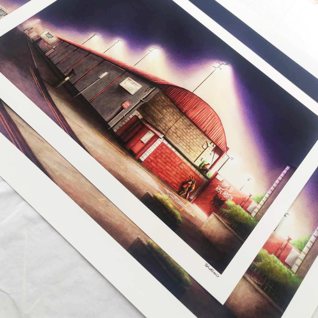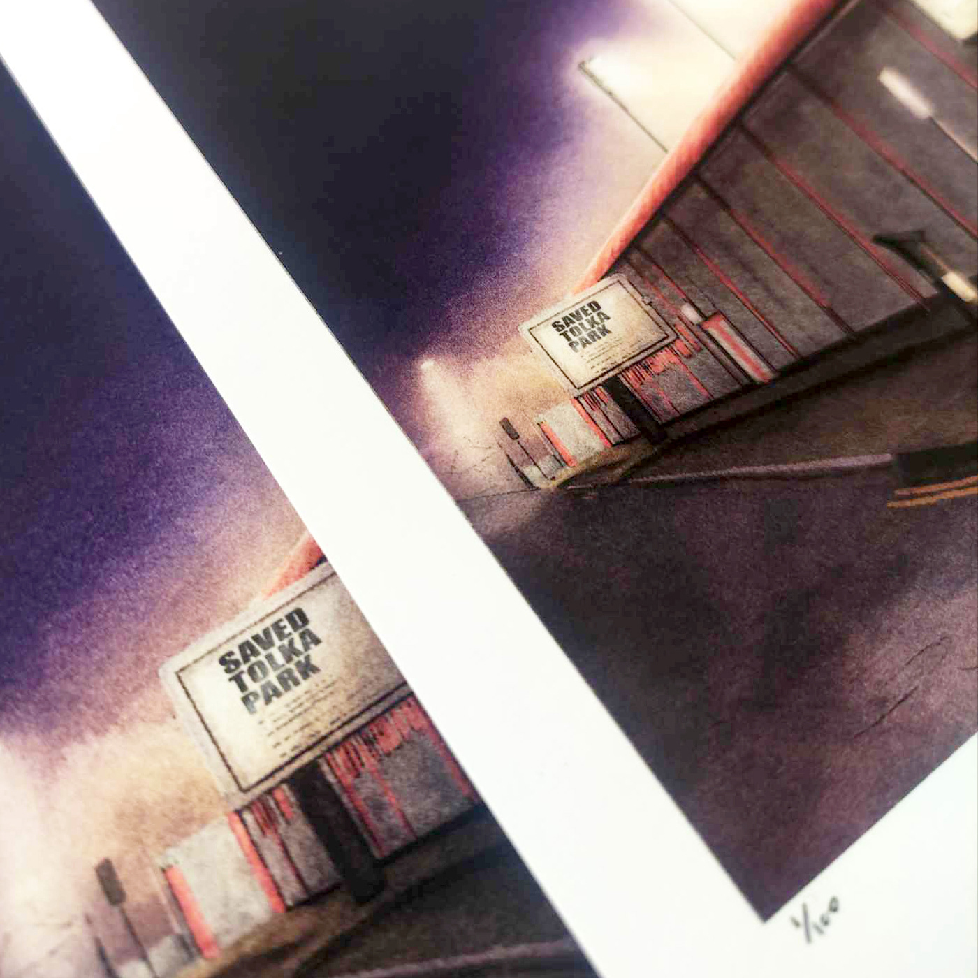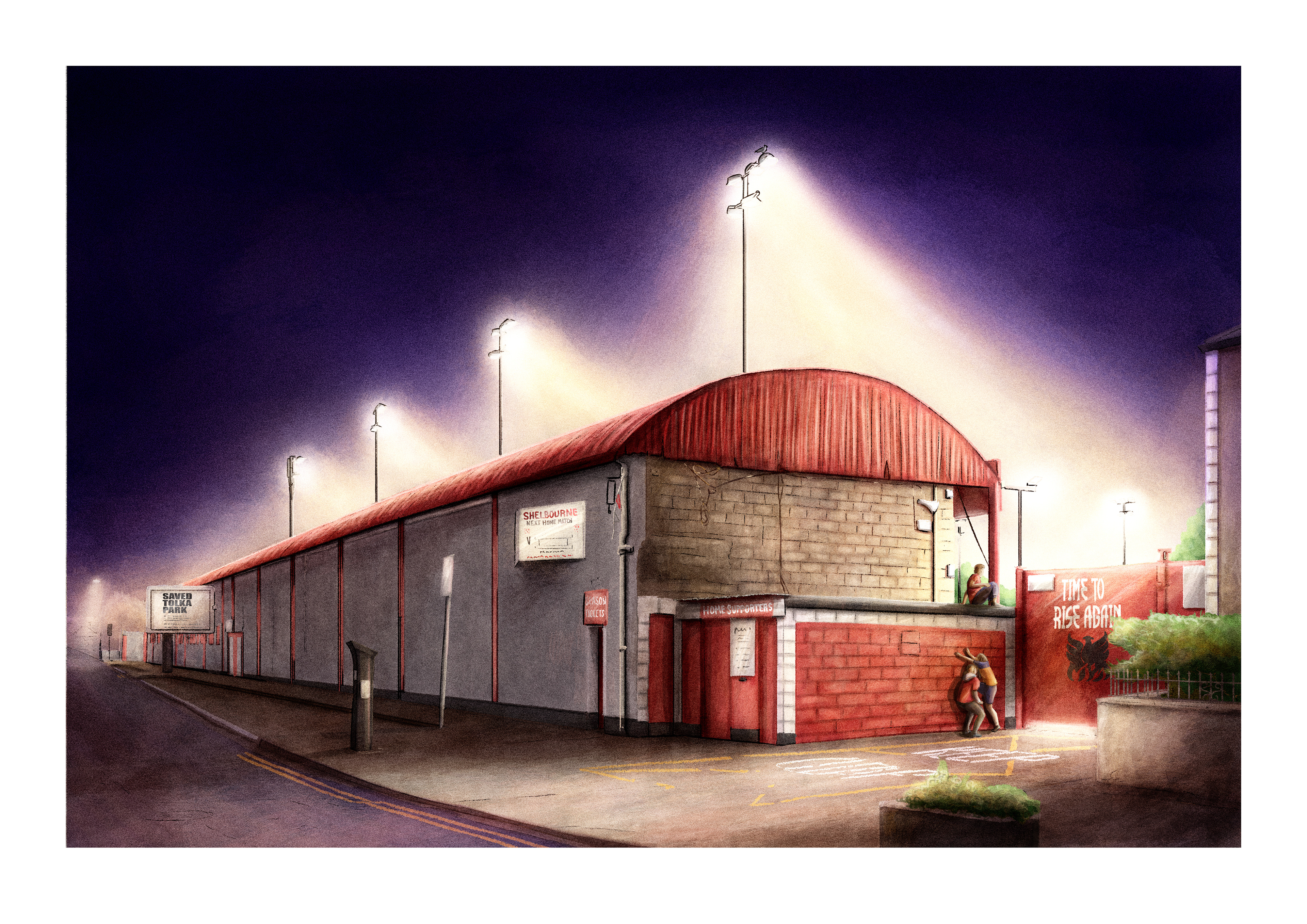 A limited edition print illustration outside Tolka Park, home of League of Ireland Football club Shelbourne.