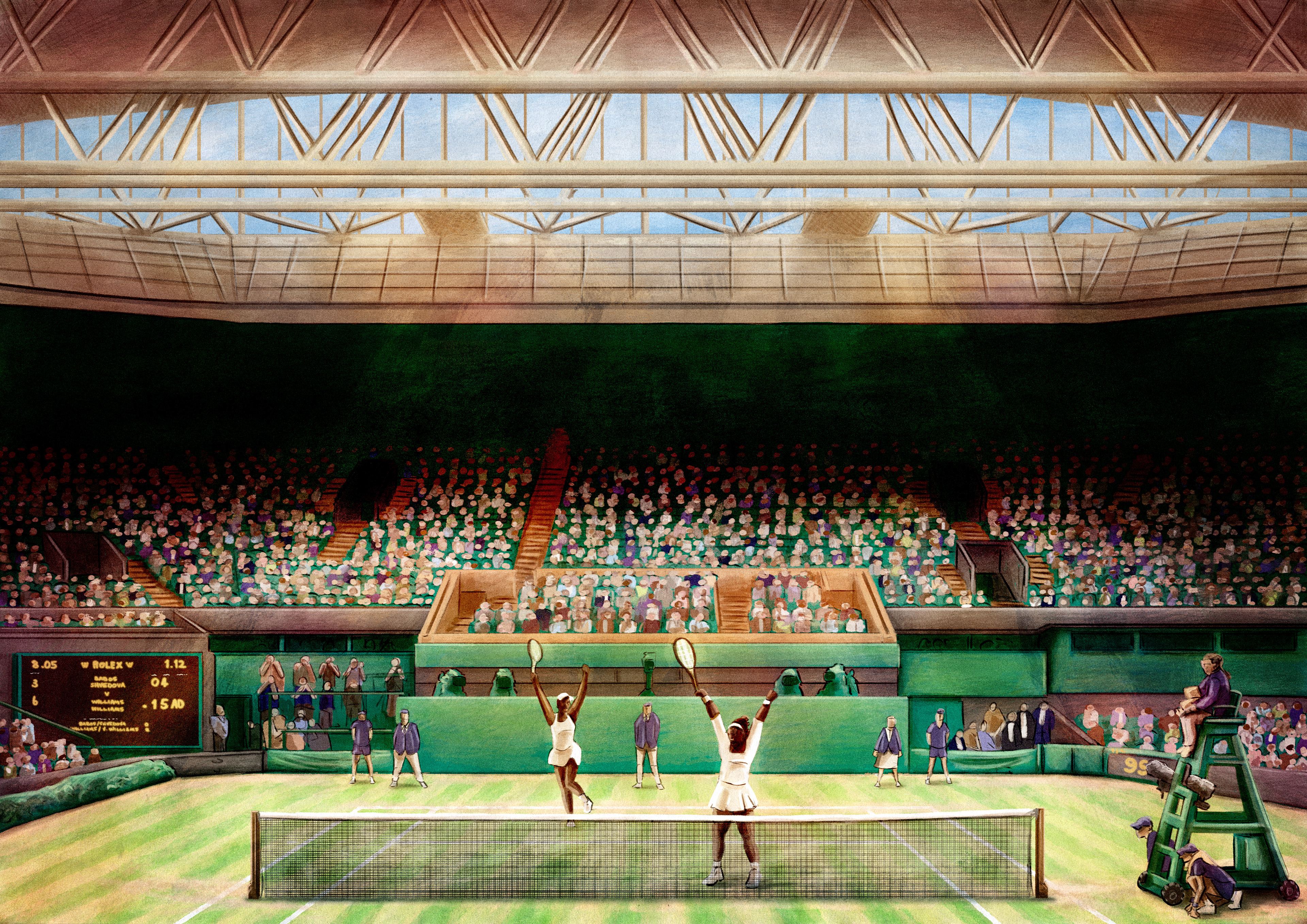 I was commissioned to create this piece for Iconic Sporting Art Ltd, depicting the Williams sisters moment of triumph in their final doubles grand slam victory at Wimbledon in 2016.